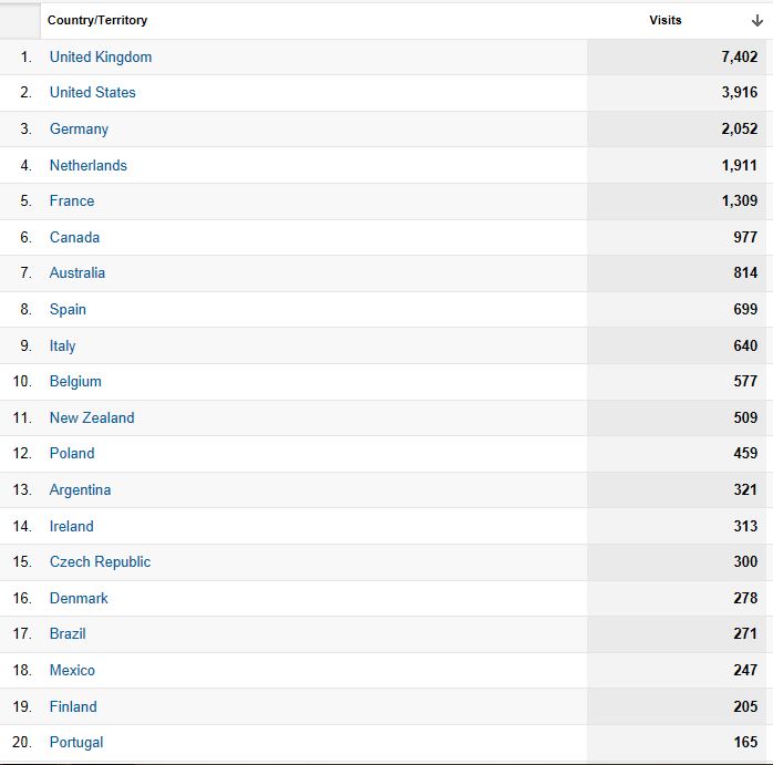 Top 20 Countries out of 122, from the first 5 months online