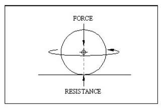 Such an arrangement doesn’t work to well because as a pushing force is applied to the wheels axle the wheel has a tendency to track along a course that is exactly opposite the direction of the applied force. If the force is coming from directly overhead the wheel simply wants to revolve around a pinpoint spot on the ground directly below the force being applied and it will just spin around about its vertical axis getting nowhere