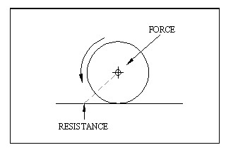 However if we change the angle of force from directly overhead and incline it slightly the wheel will want to follow along an imaginary line opposite the force being applied and it will roll along in a straight line tracking from a point that lies directly beneath is vertical axis to an imaginary point of resistance opposite the line of force