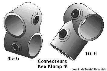 – I used connectors Key Clamp because they are those found at the time of the design of this plan; but they are not only kind, and other connectors would amply deserve to be tested (surely less weight, perhaps lower prices…), in particular aluminium connectors reinforced KeeLite of the same mark, and the Centurion (France) or Holland (the USA)